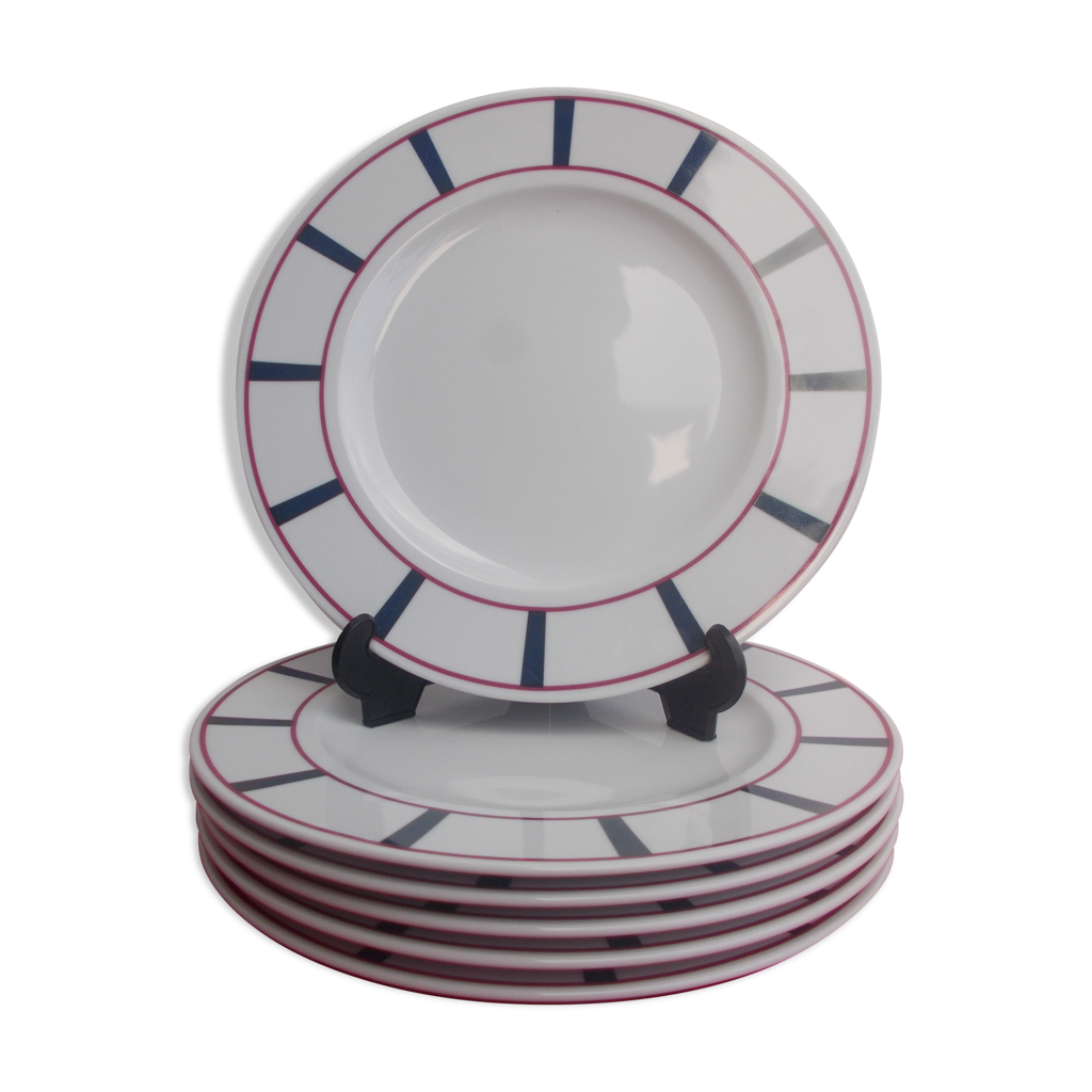 Set de 18 assiettes basque porcelaine bleu et rouge | Selency