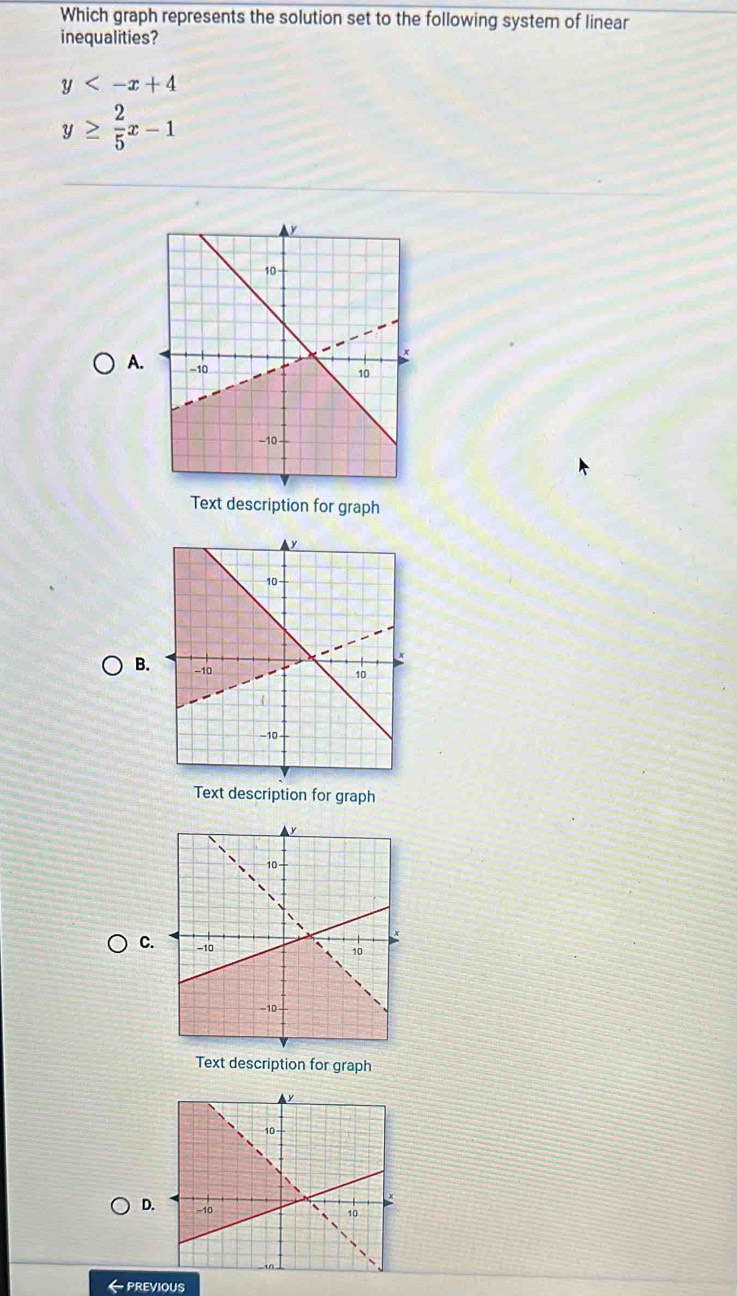 Solved: Which graph represents the solution set to the following system ...