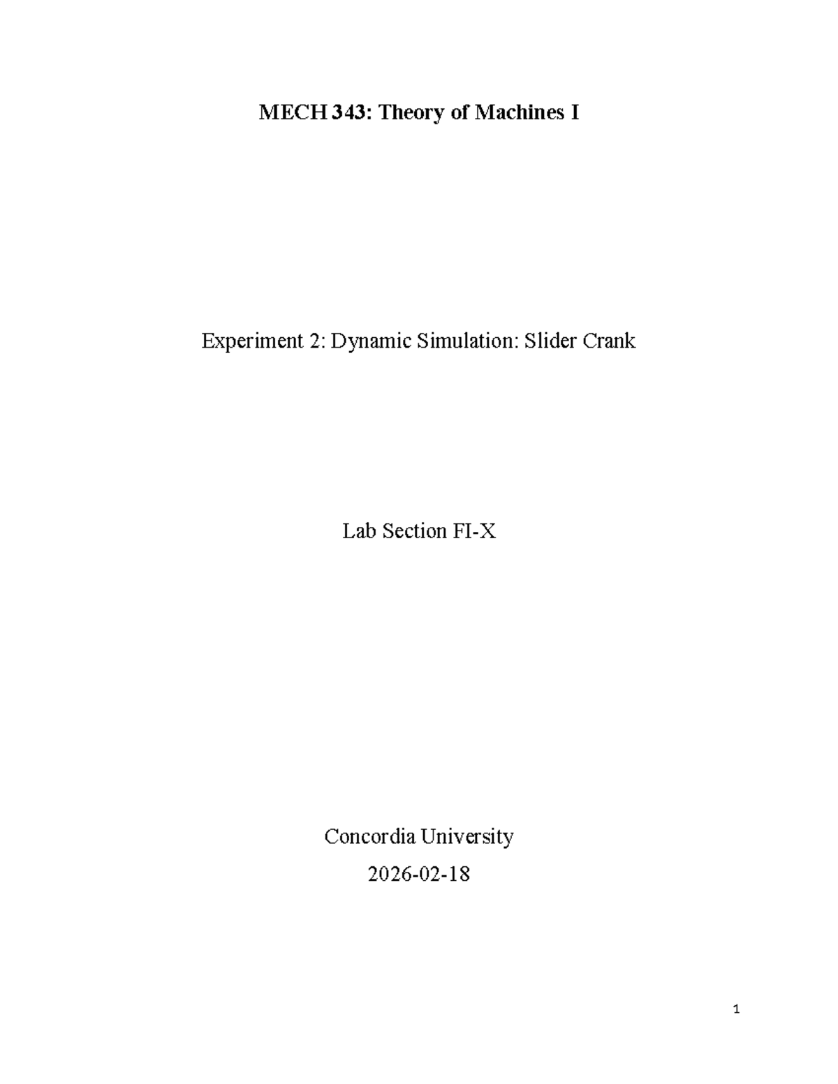 MECH 343: Dynamic Simulation of Slider Crank - Lab 2 Report - Studocu