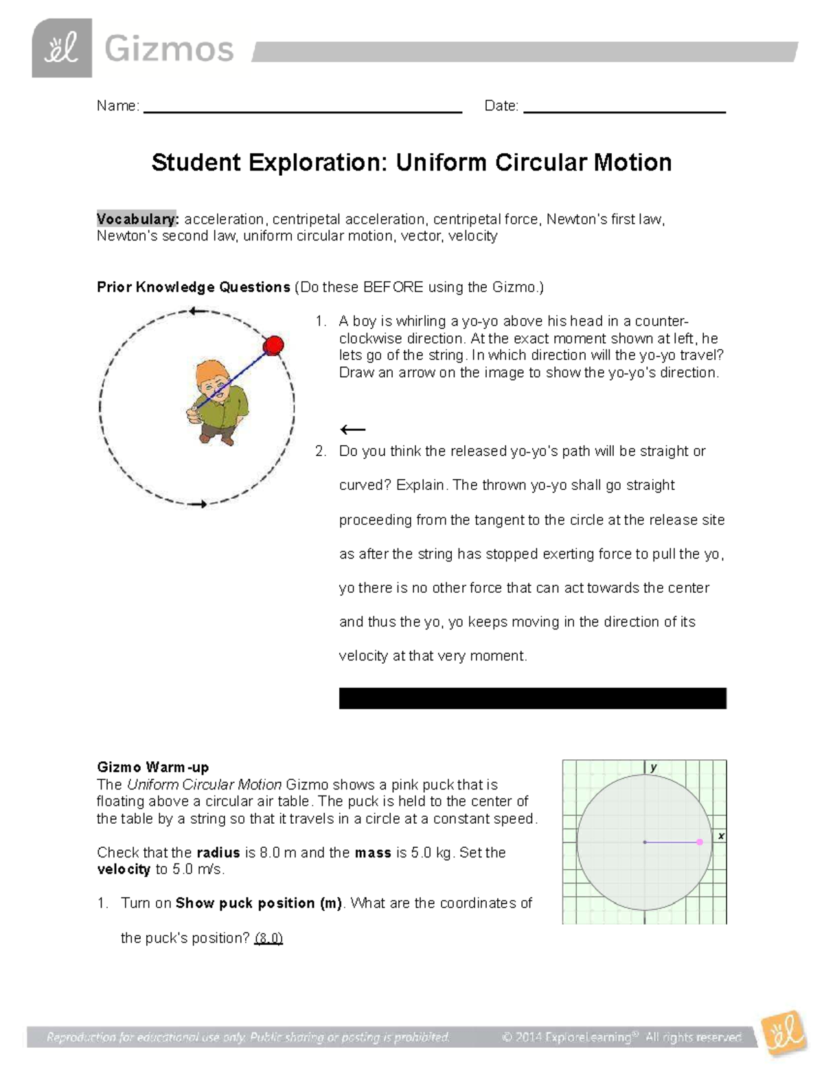 06 Uniform Circular Motion SE: Exploring Concepts and Forces - Studocu