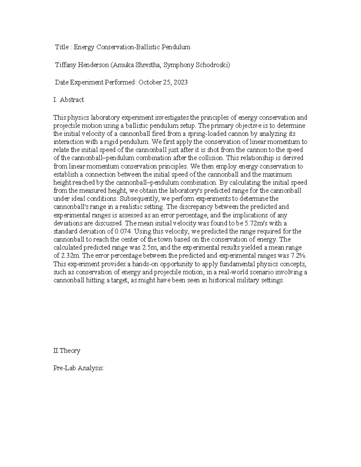 Physics Lab Report 6: Energy Conservation & Projectile Motion Analysis ...