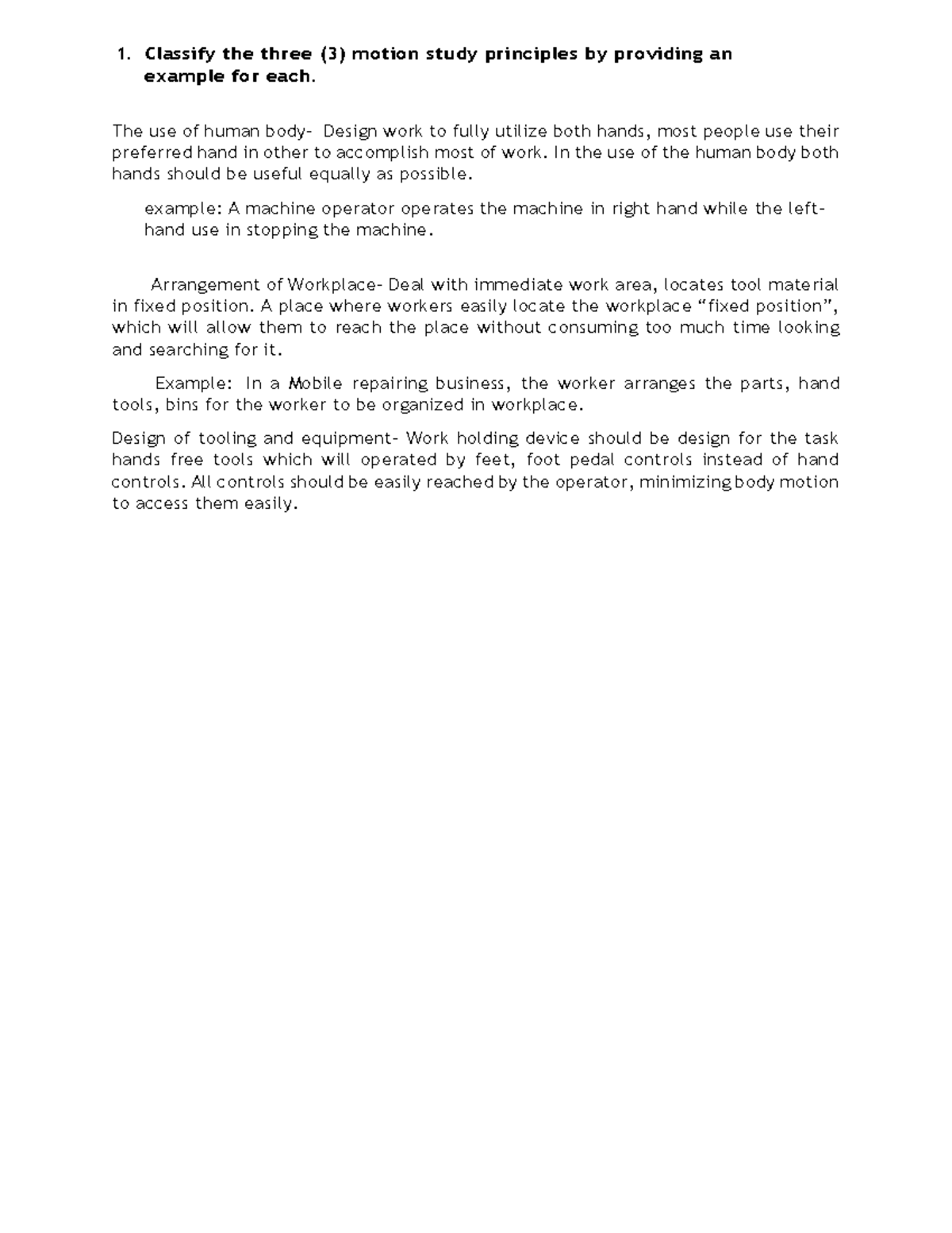 Motion Study Principles and Sample Scenarios Explained | Course Hero