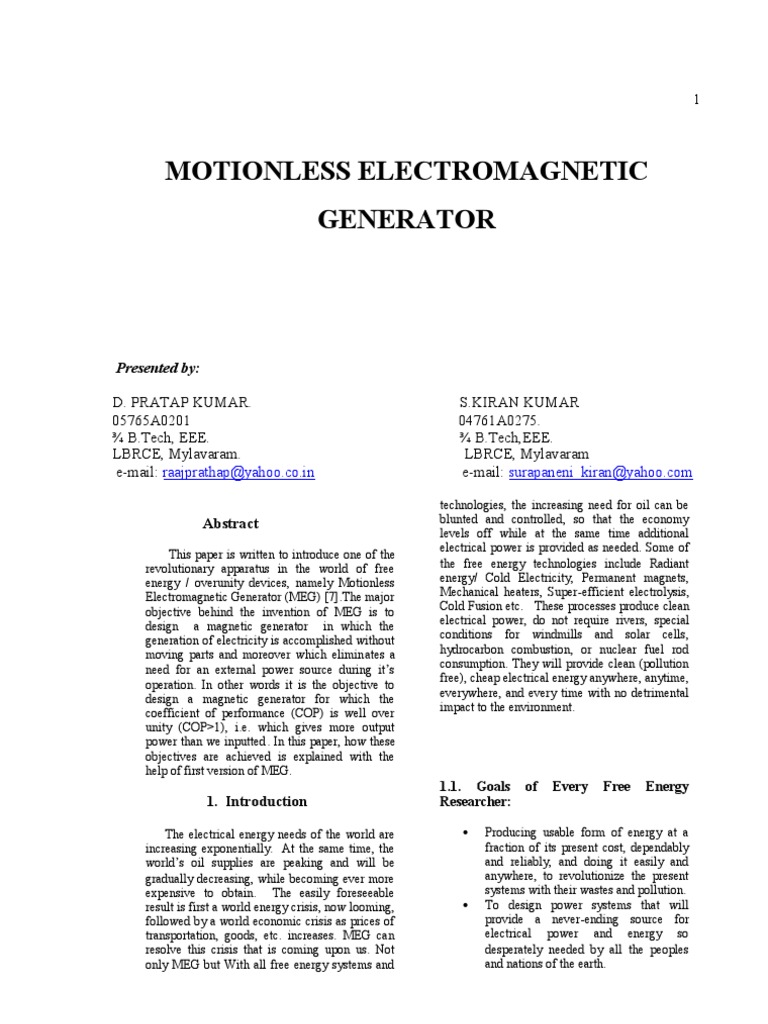 Motionless Electromagnetic Generator (Meg) | PDF | Electric Generator ...
