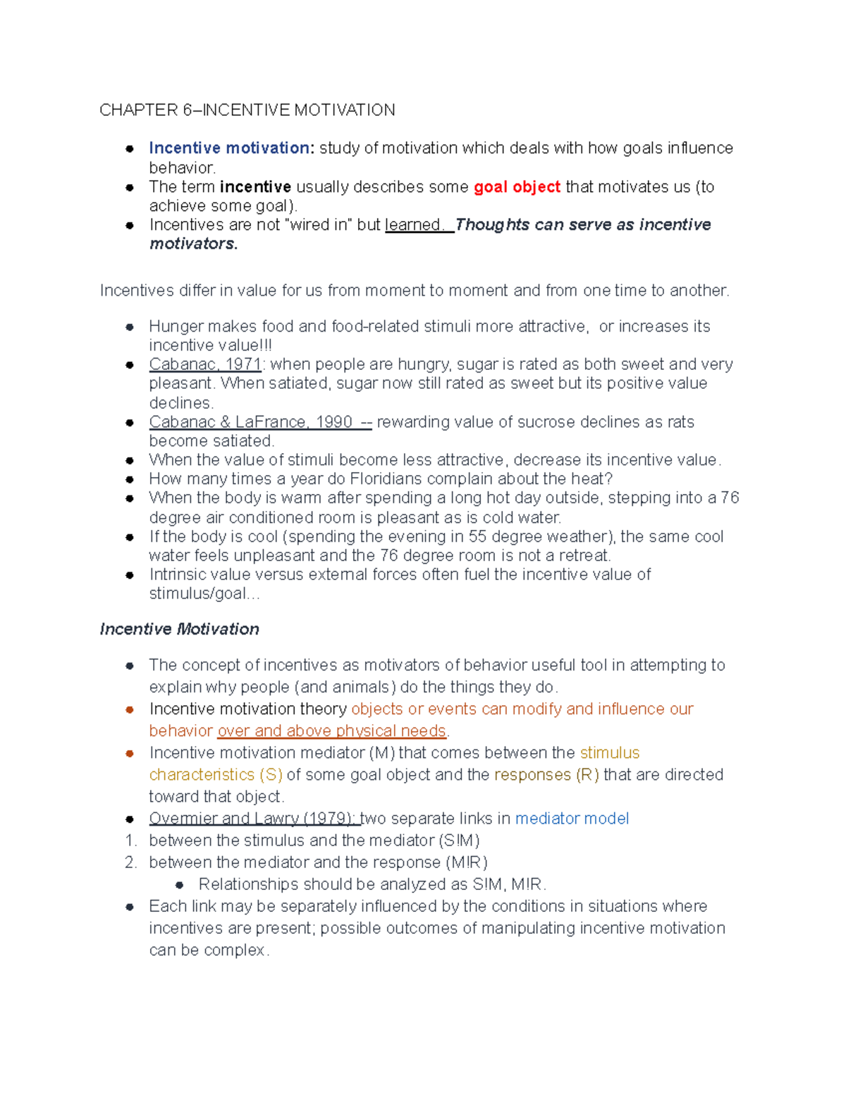 Psychology of Motivation Chapter 6 Part 1 - CHAPTER 6–INCENTIVE ...