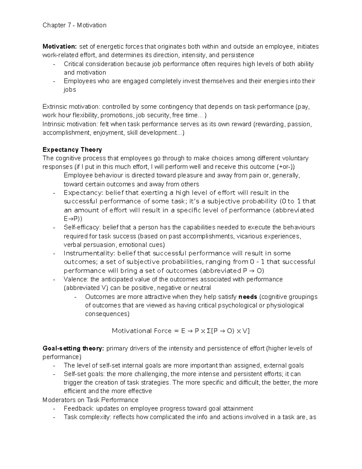 Chapter 7 - Motivation Concepts Notes.pdf - Chapter 7: Motivation ...