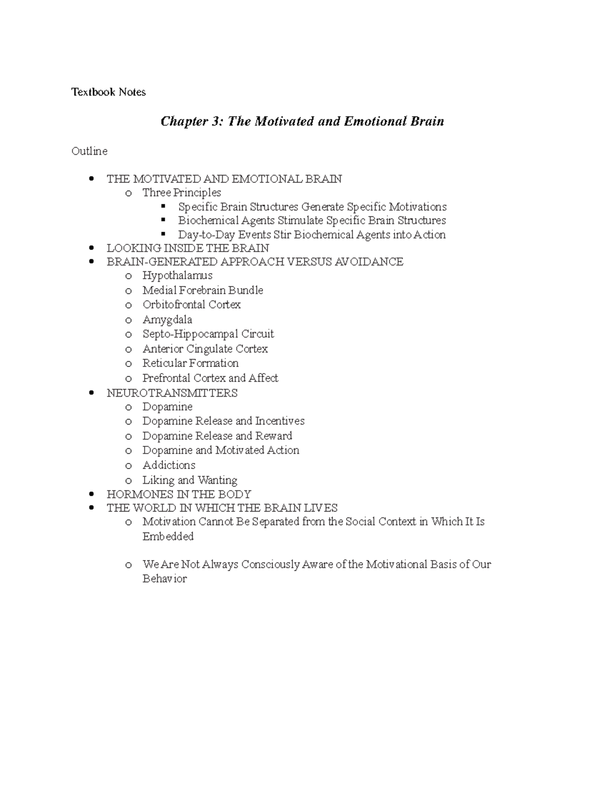 Ch. 6 Discussion Notes - Chapter 6: Mechanism of Motivation Emotions ...
