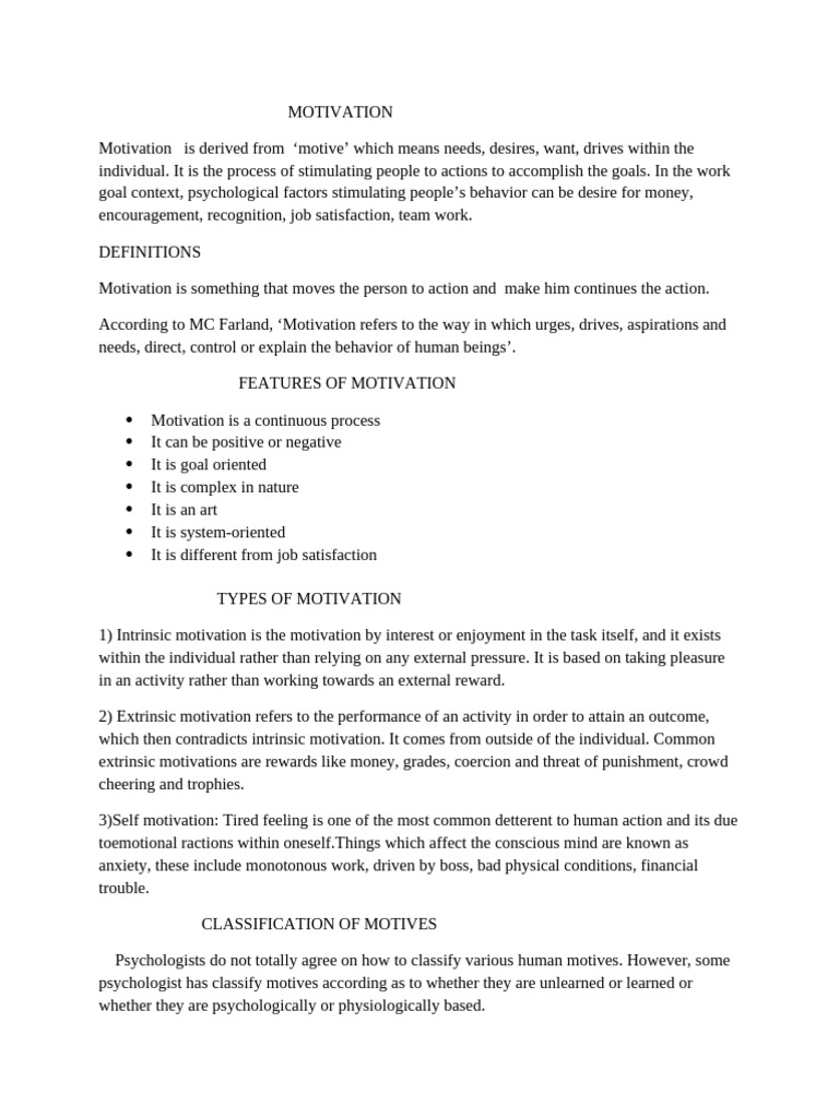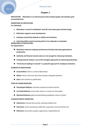 Motivation Notes - MOTIVATION NOTES Chapter 1 NOTES FROM LECTURE AND ...