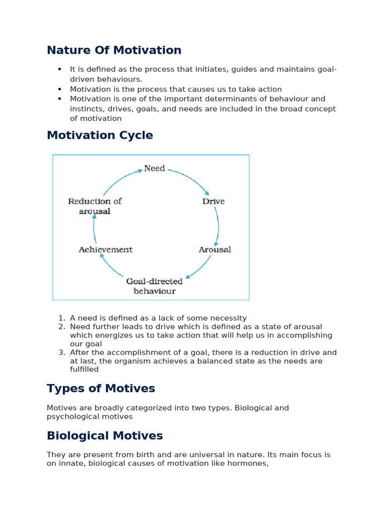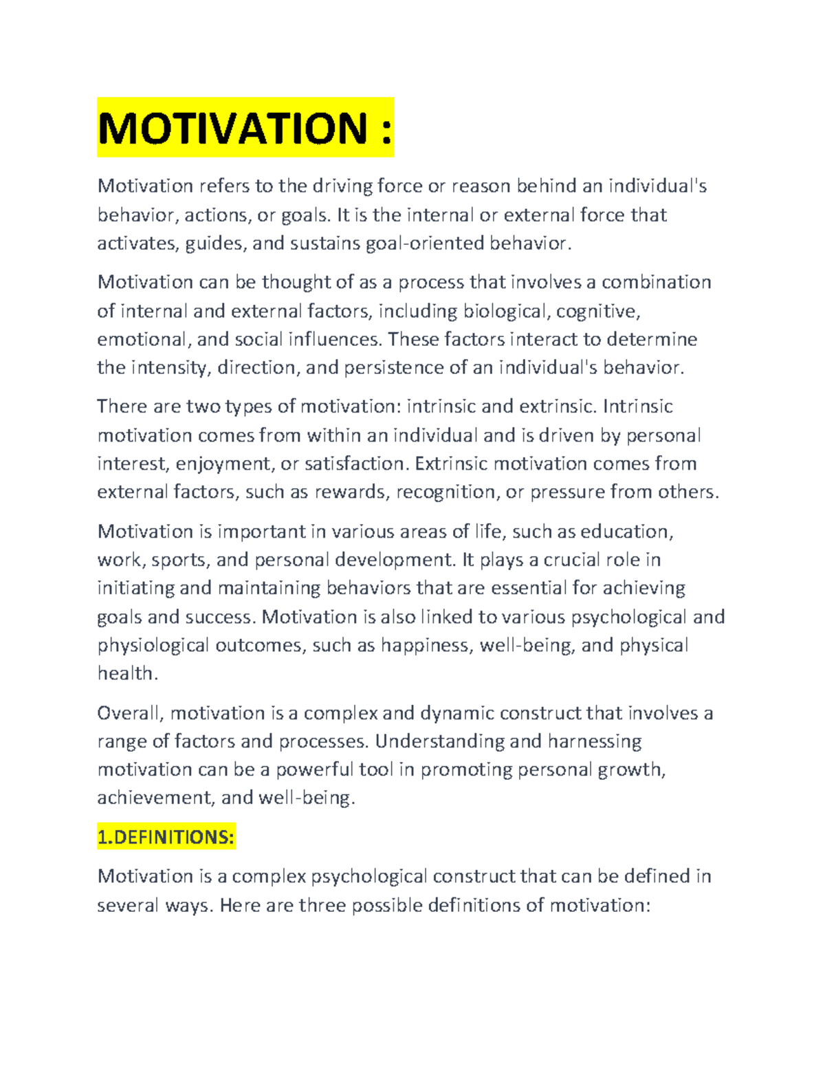 What is Motivation - CHAPTER NOTES - MODULE 9: MOTIVATION What is ...