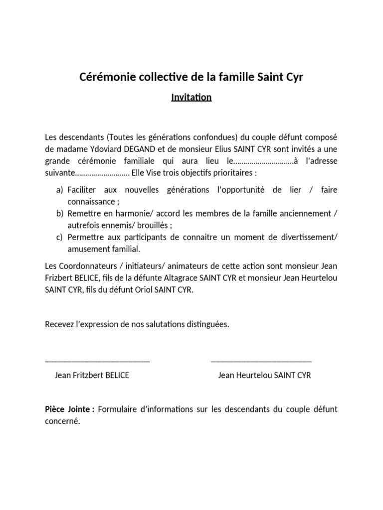 Lettre D'invitation Pour La Famille SAINT CYR | PDF