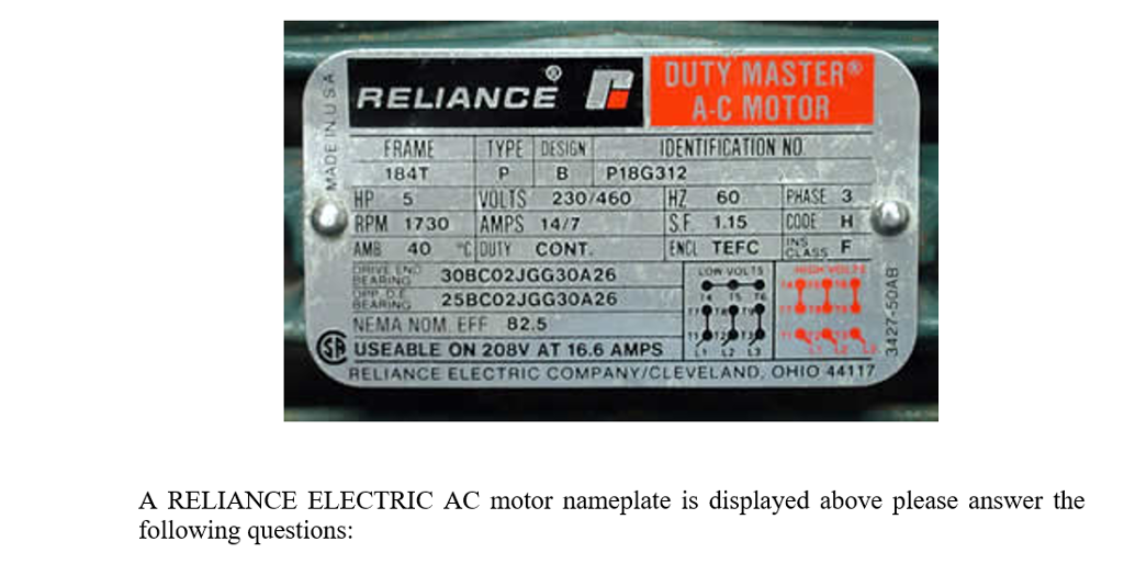 Solved: Nduction Motors Are Given NEMA Codes That Indicate... | Chegg.com