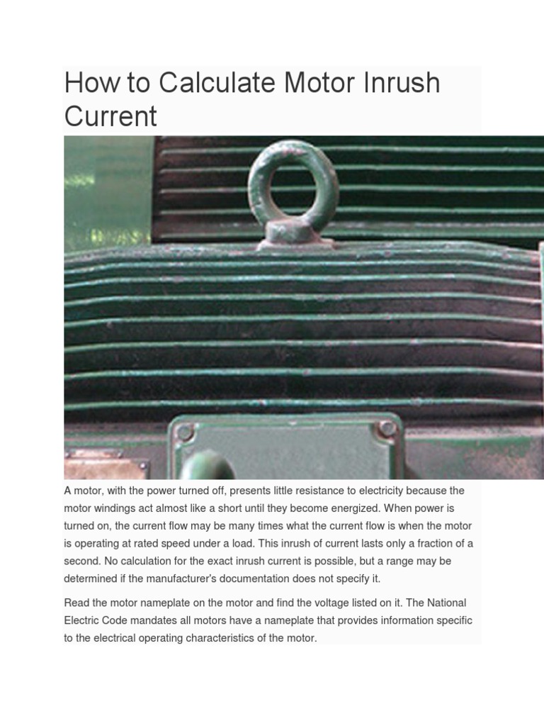 How To Calculate Motor Inrush Current 2 | PDF | Electric Motor | Voltage