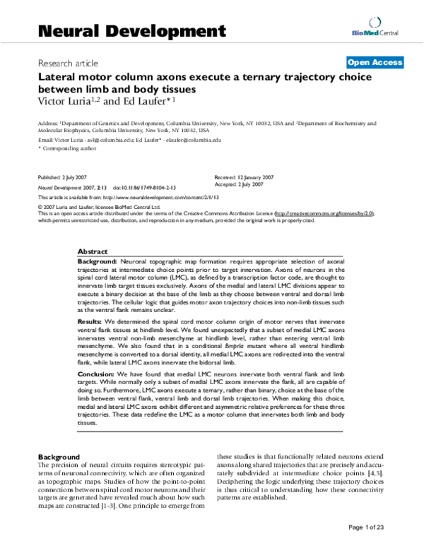 (PDF) Lateral motor column axons execute a ternary trajectory choice ...