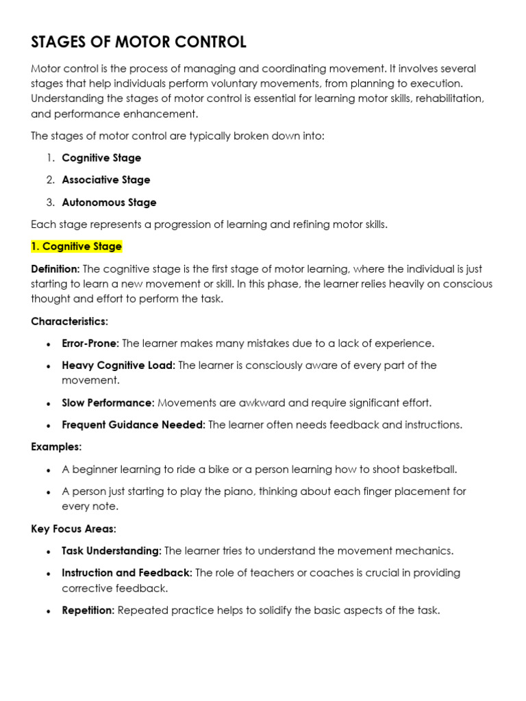 Stages of Motor Control - Output 1 - Bped | PDF | Learning | Motor Control