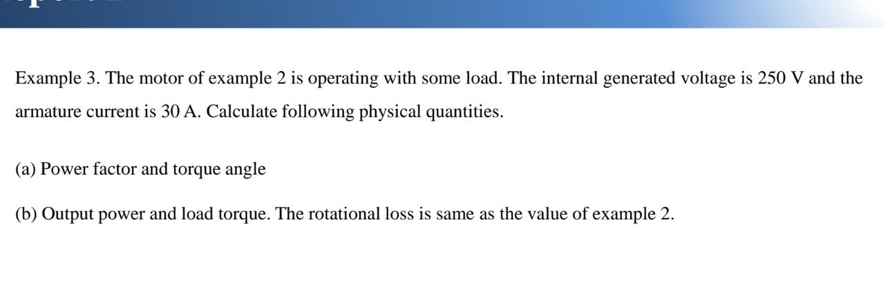 Example 3. The motor of example 2 is operating with | Chegg.com