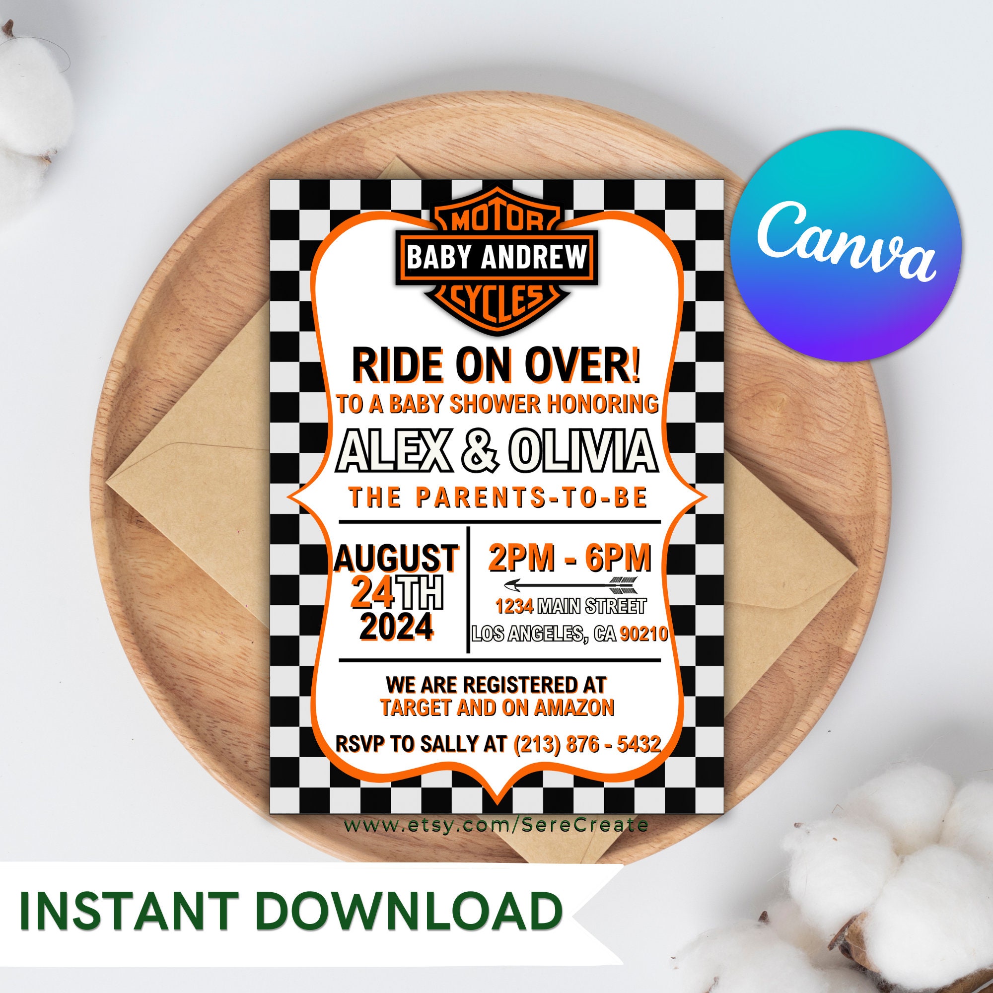 Editable Motorcycle Baby Shower Invitation, Canva Template, INSTANT ...