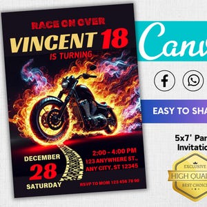 Motorcycle Birthday Invitation for Teens | Editable Canva Pro Template ...