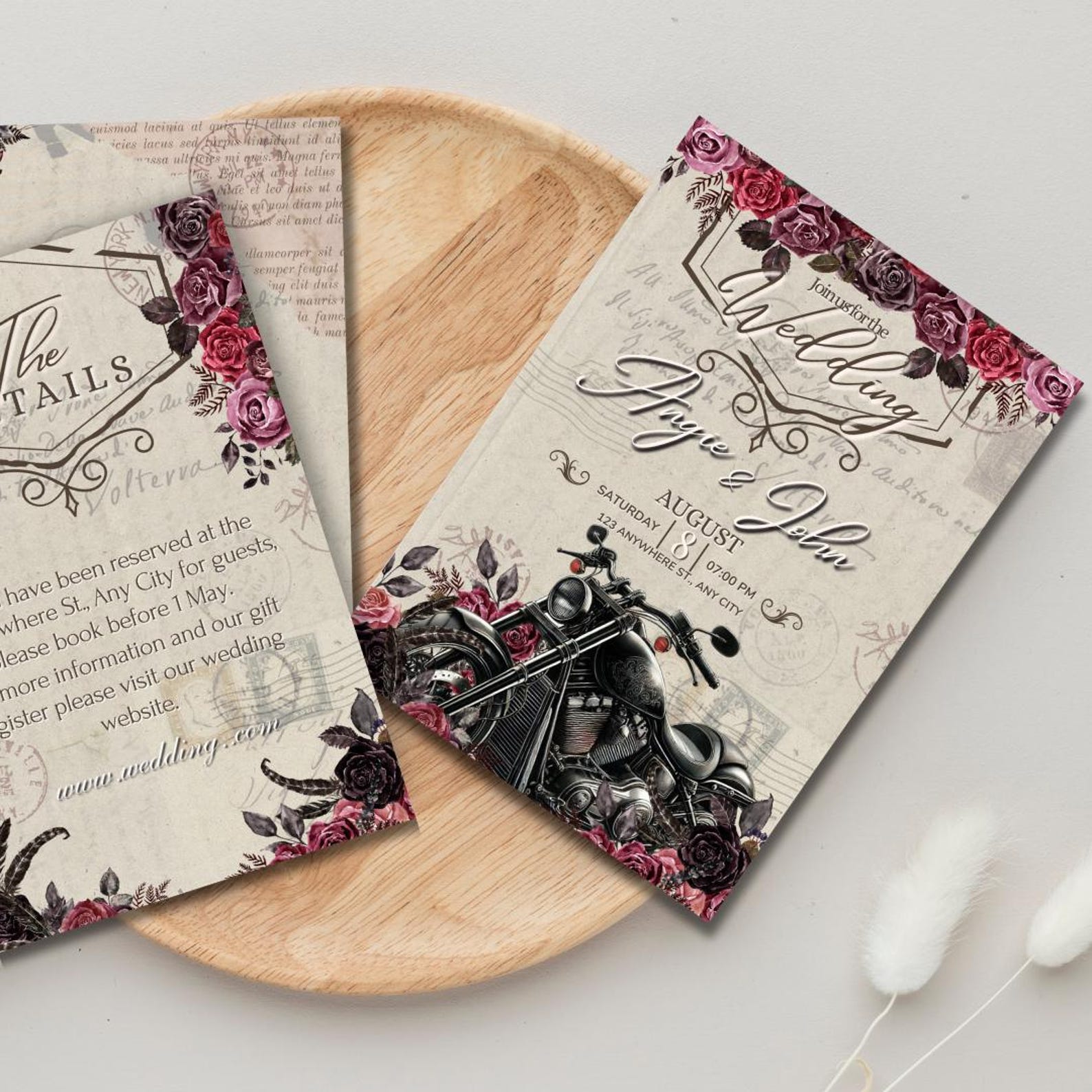 Motorcycle Wedding Invitation Set, Printable Motorbike Wedding ...