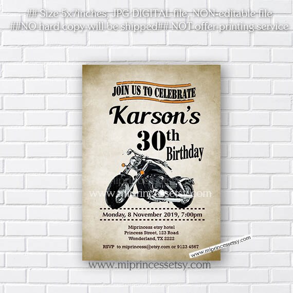 Motorcycle Invitation Printable Man Vintage Invitation Bike - Etsy