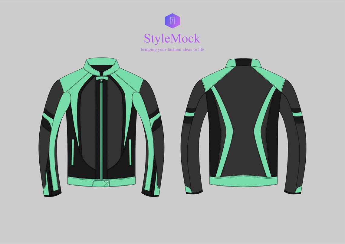 Motorcycle Jacket Vector Mockup – Fashion Flat Drawings (svg, Png, Ai ...