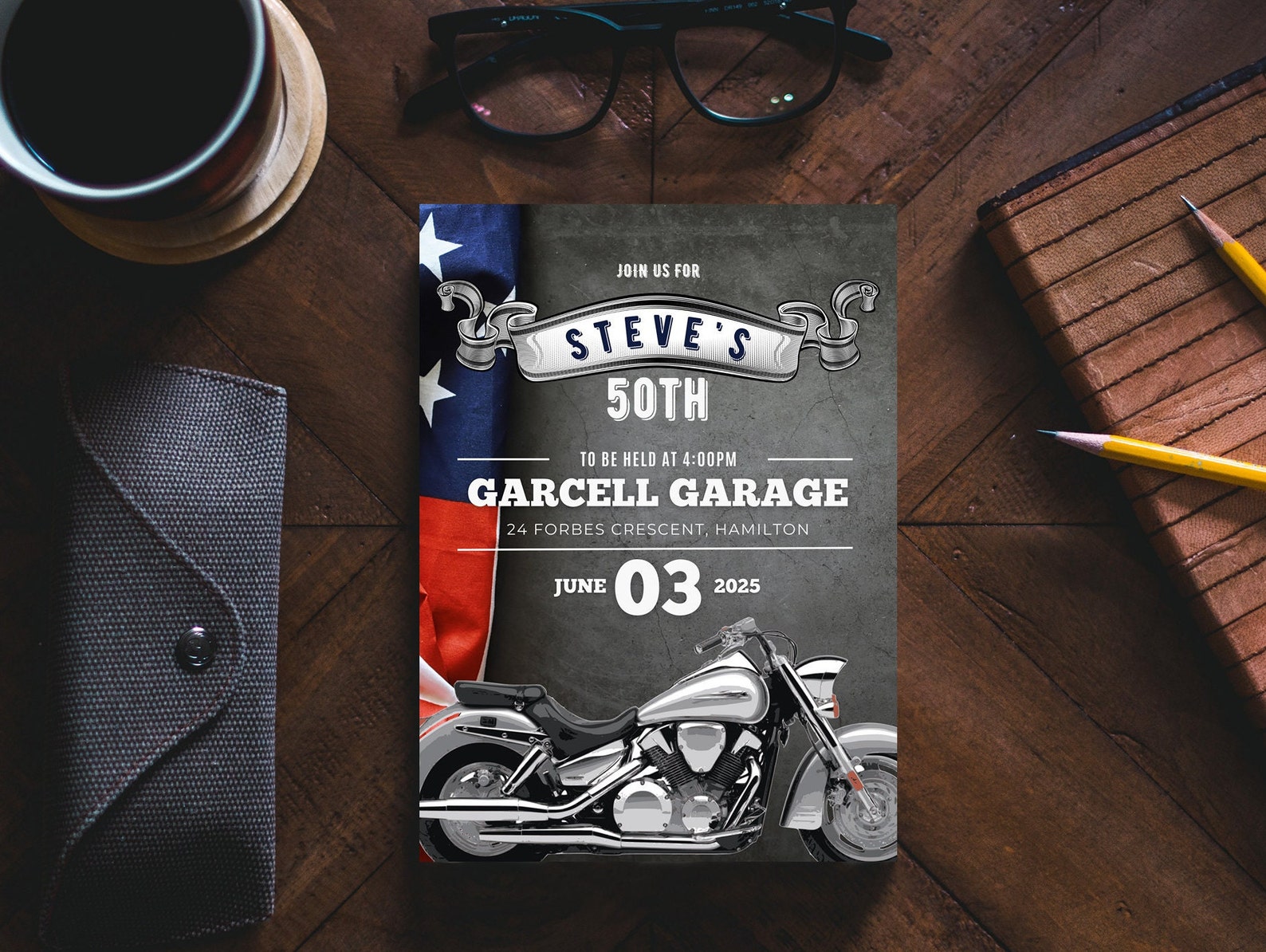 Motorcycle Party Invitation, Editable Template, Instant Download, DIY ...