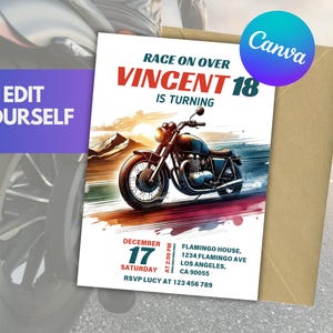 Motorcycle Birthday Invitation for Teens | Editable Canva Pro Template ...