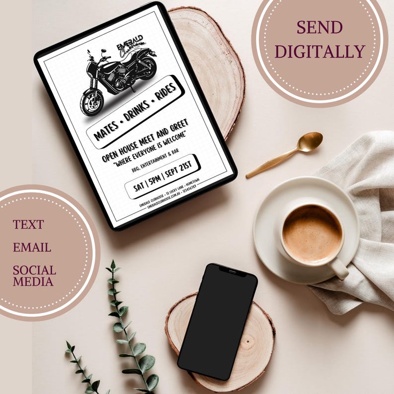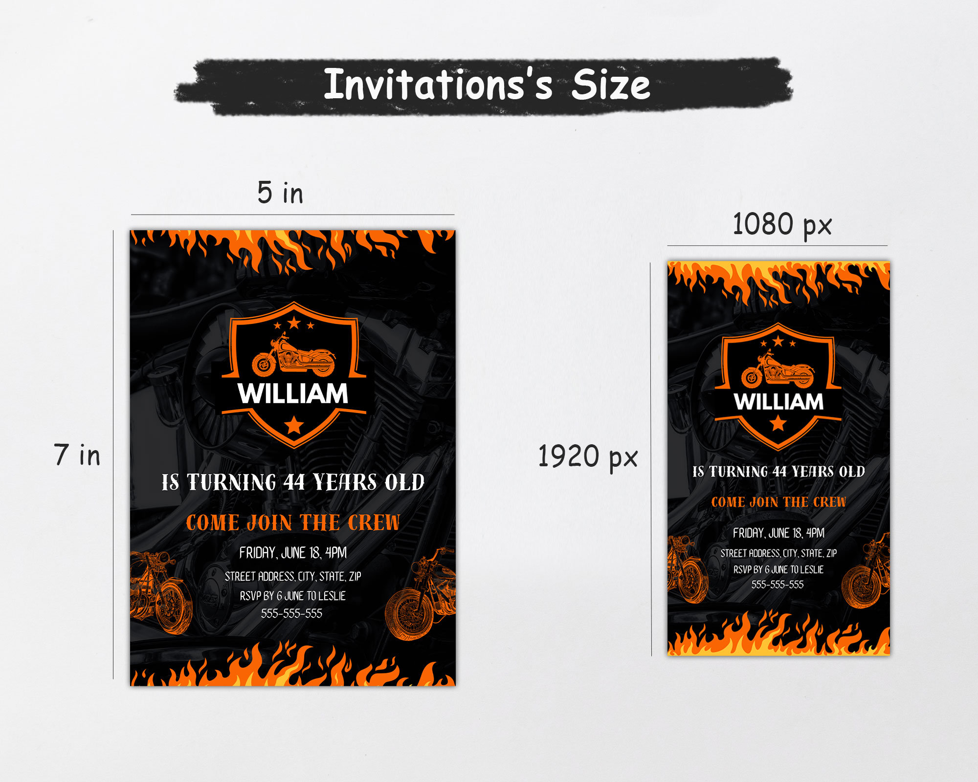 Motorcycle Invitation Self-editing TEMPLATE + Mobile Invite TEMPLATE ...