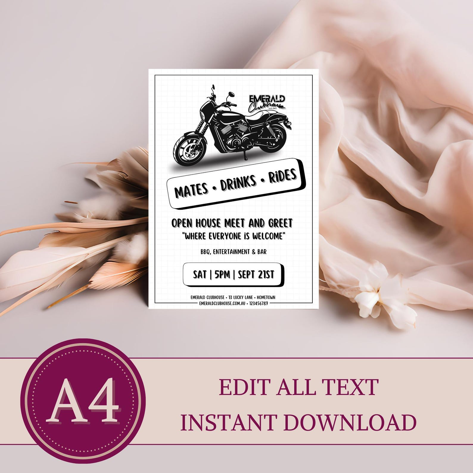 A4 Motorcycle Club Flyer Invitation Template, Meet and Greet Event ...