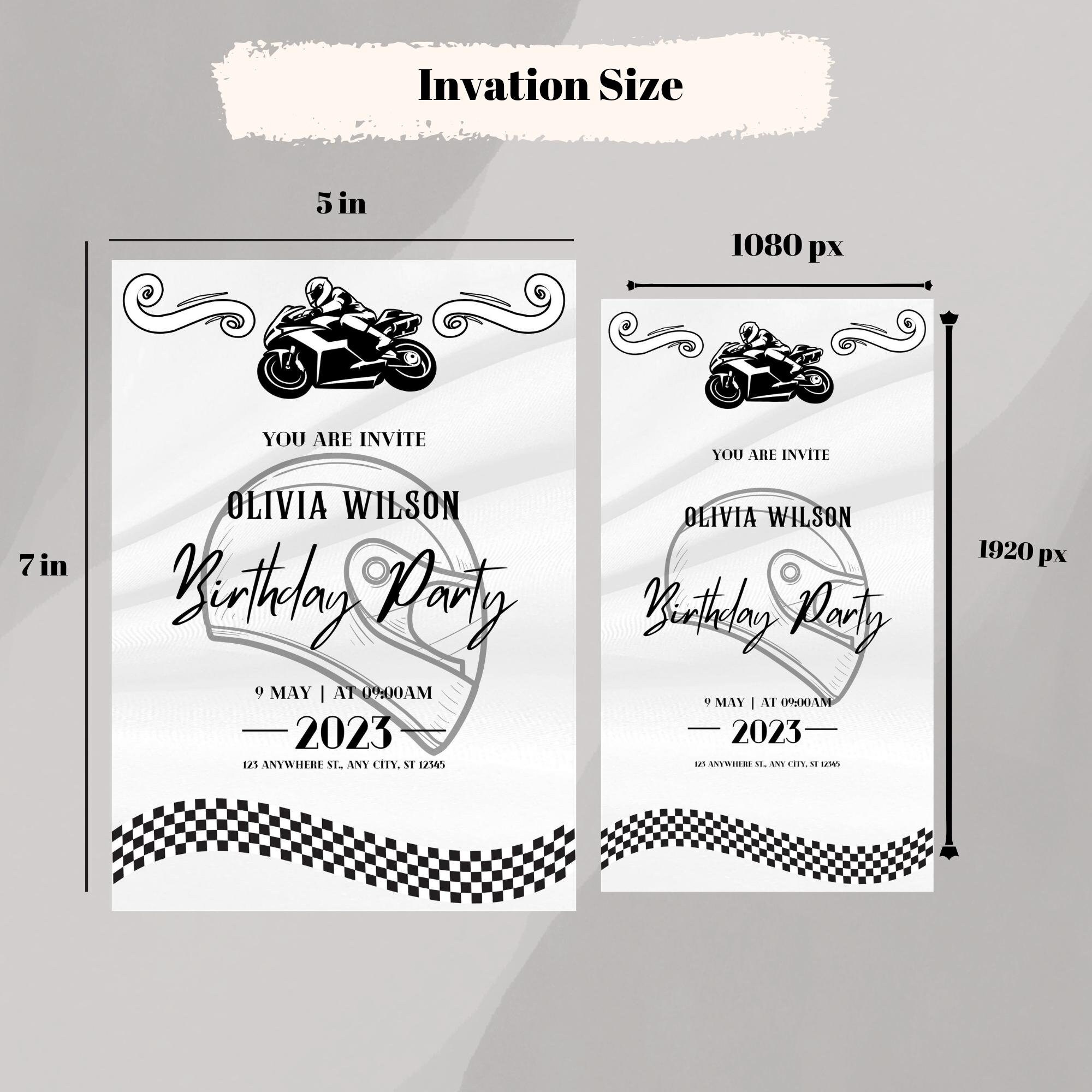 Editable, Motorcycle Birthday Invitation, Motorcycle Race Party, Canva ...