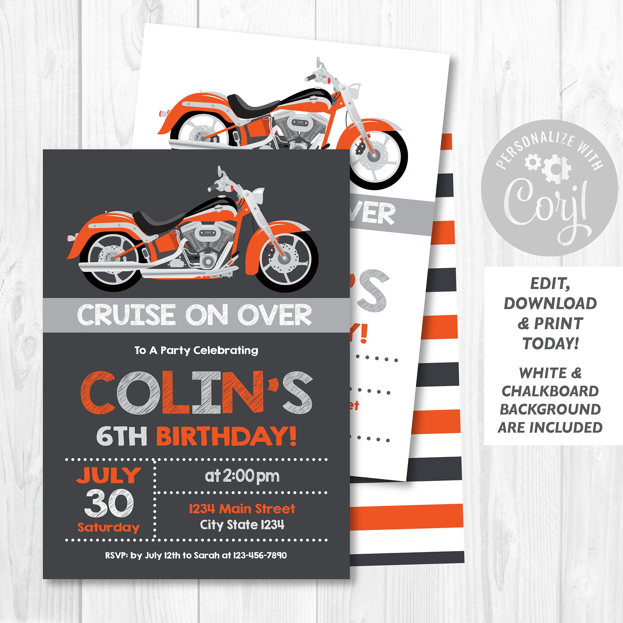 Editable Motorcycle Invitation Motorcycle Birthday Motorcycle Invite ...