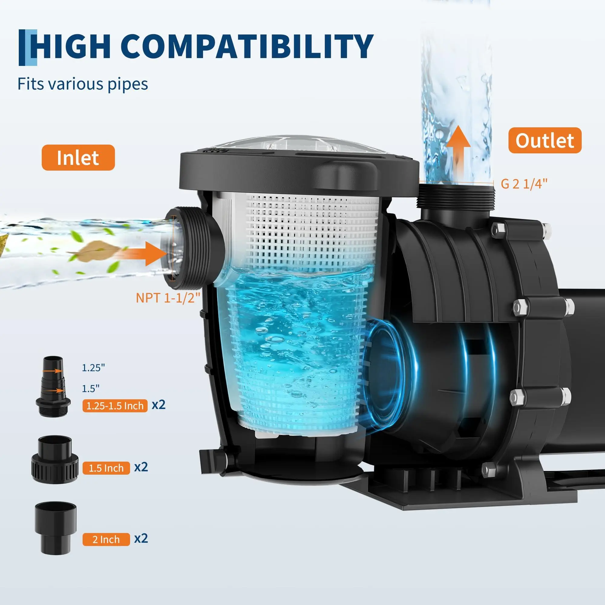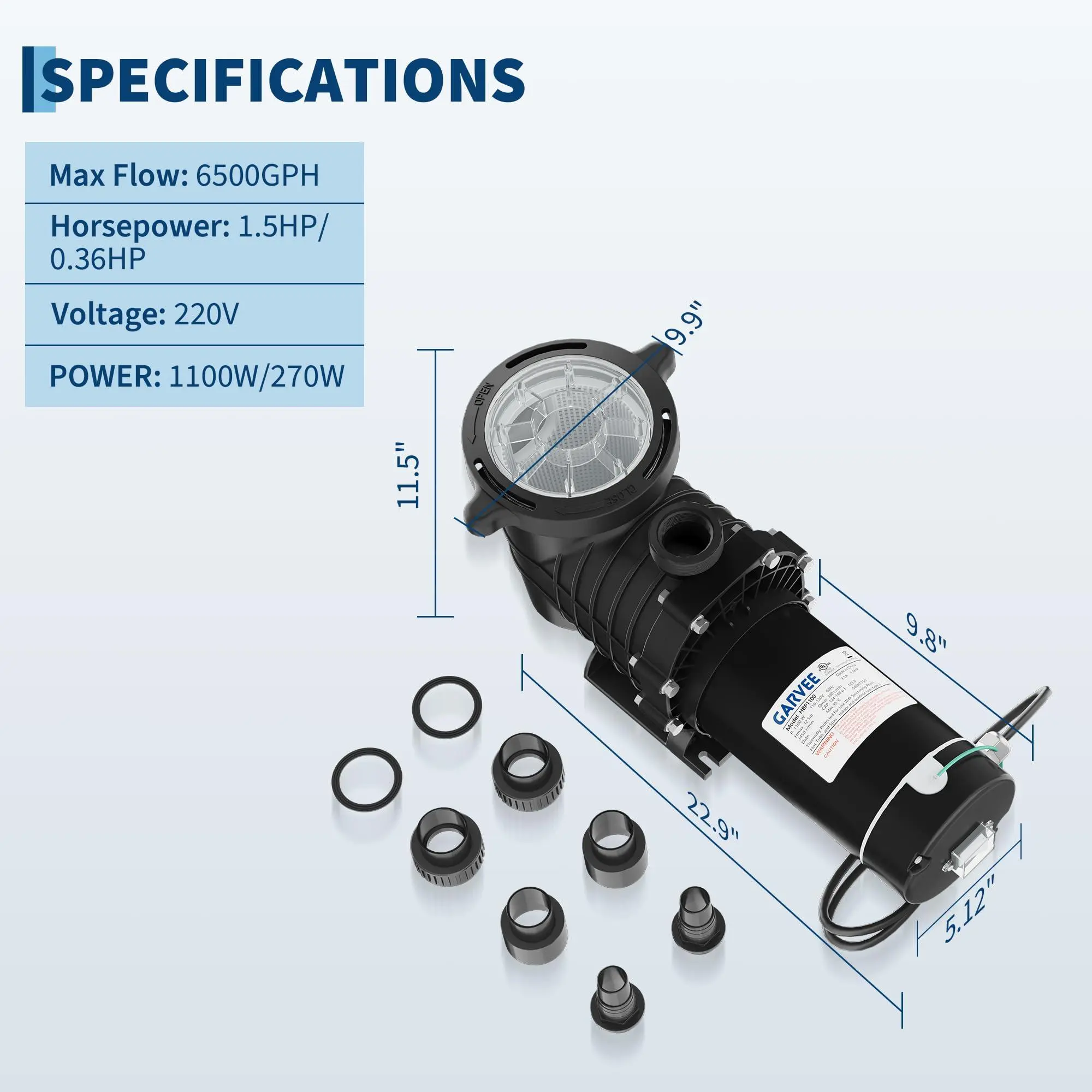 1.5 HP Swimming Pool Pump 1100W 220V Dual Speed Pumps with Strainer ...