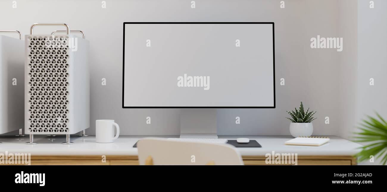 minimal desktop with mock up computer 3d rendering Stock Photo - Alamy