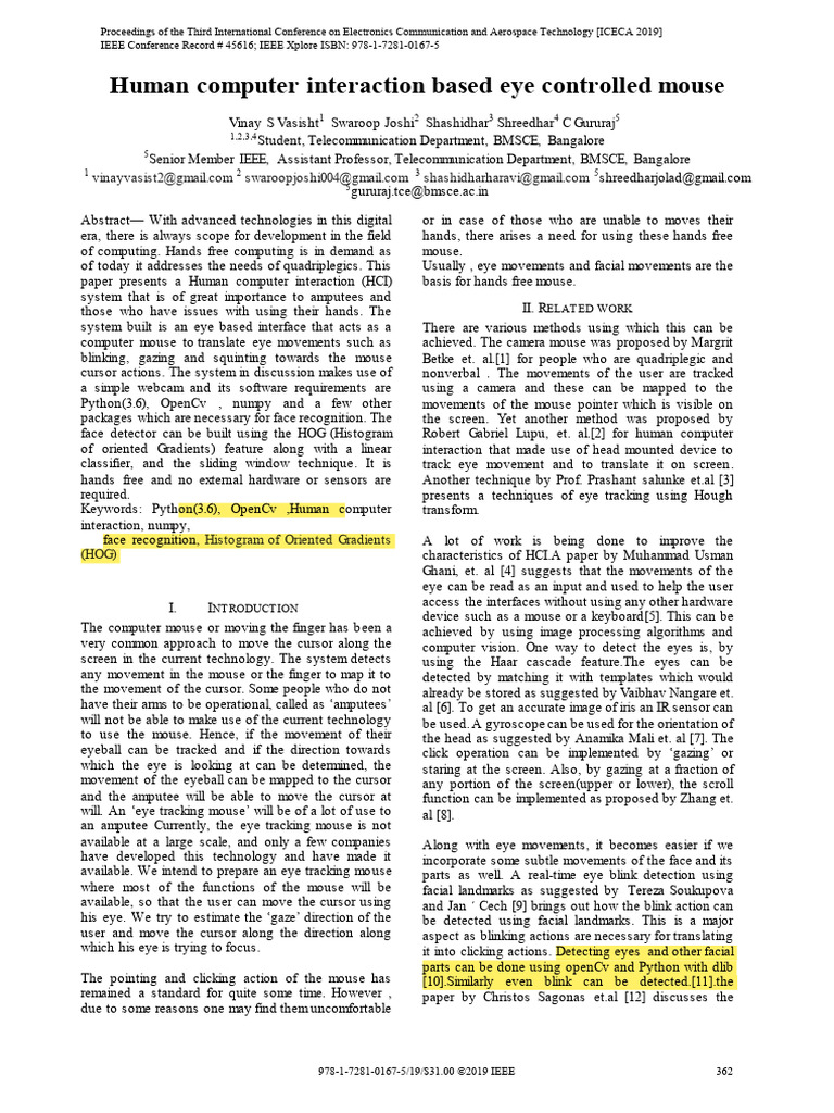 (PDF) Human Computer Interaction and Eye Tracking Eye Mouse