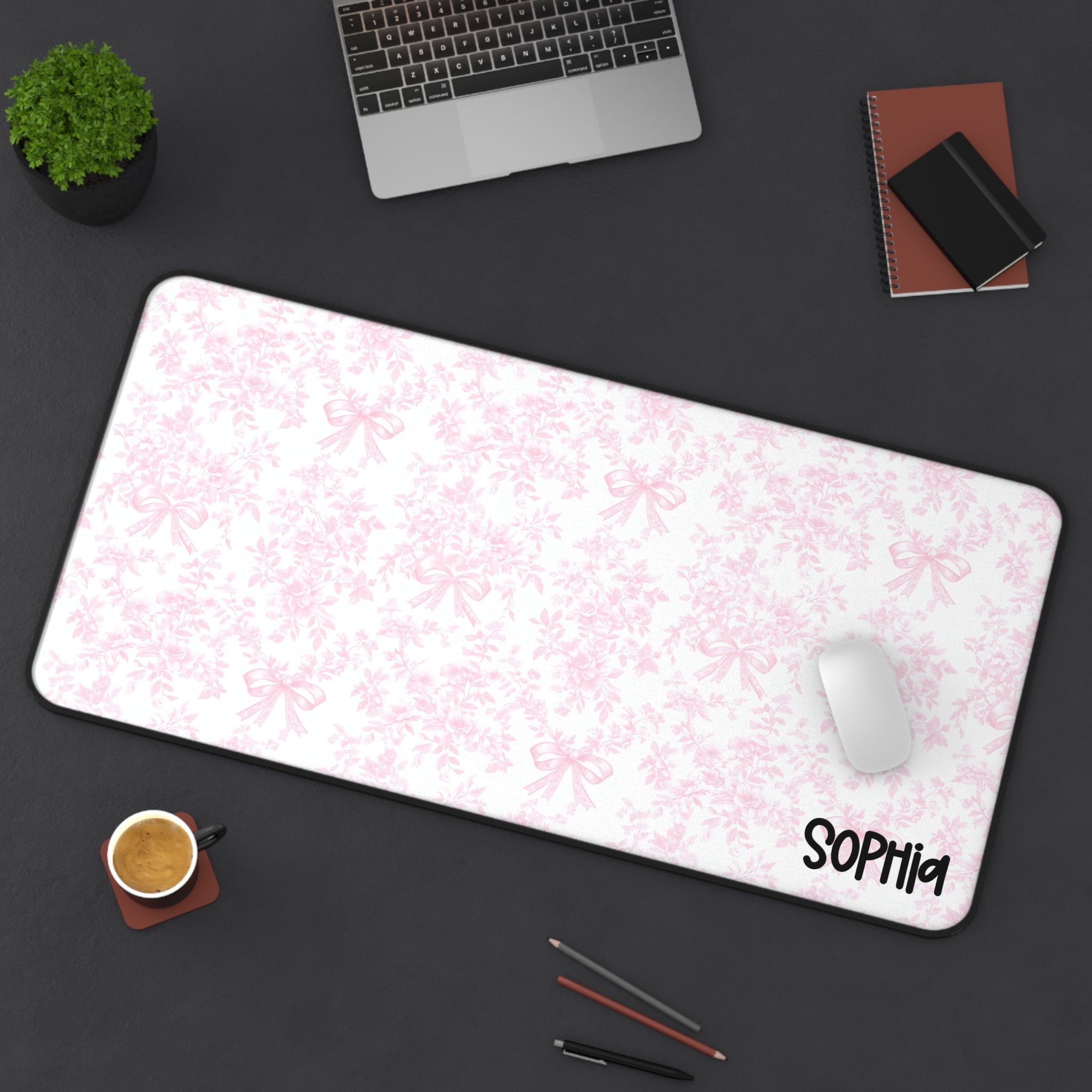 Soft Pink Damask Desk Mat — Girly Custom Name Mousepad – Cute Designs ...
