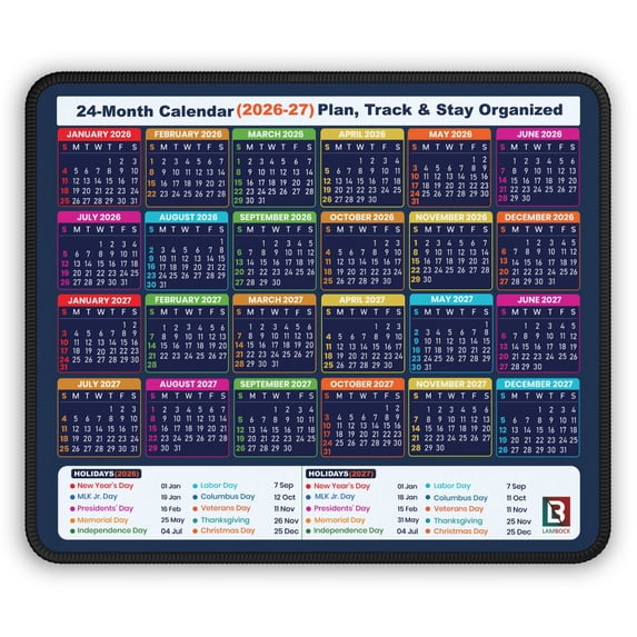Calendar 2026 - 2027 Mouse Pad with Stitched Edge | Non-Slip Rubber ...