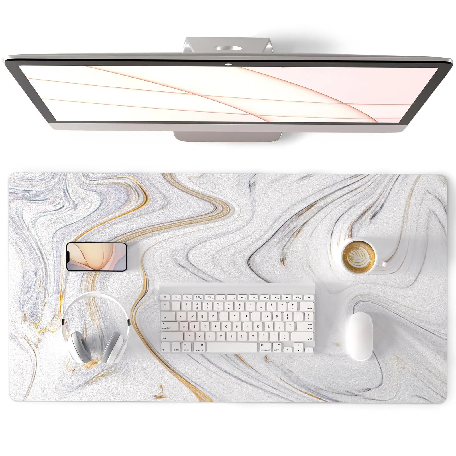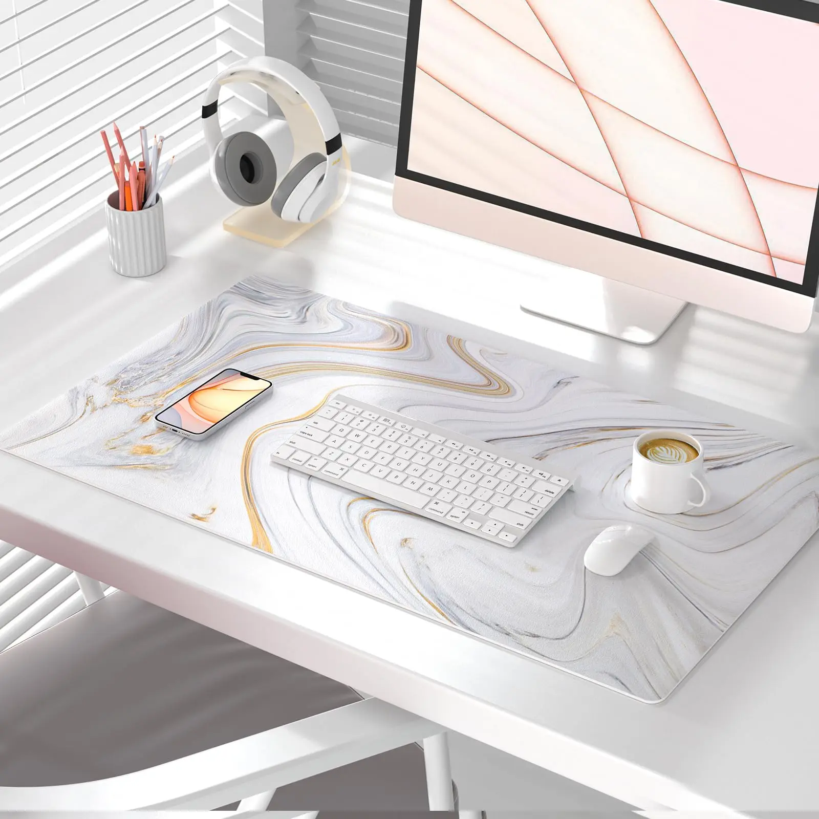 White Mouse Pad, Cute Marble Large Desk Mat, PU Leather Desk Protector ...