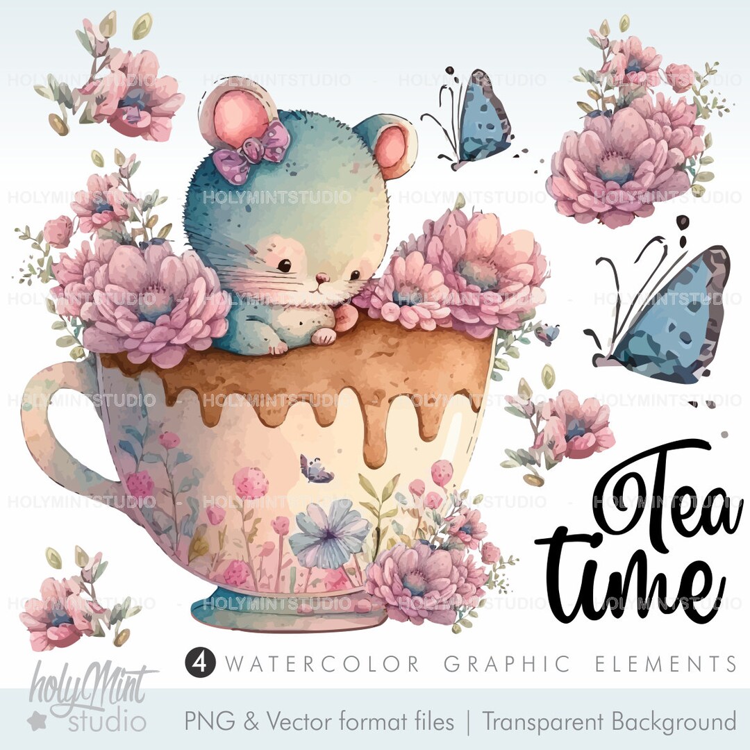 Mouse Clipart Vector, Spring Clipart Vector, Tea Time Clipart, Spring ...