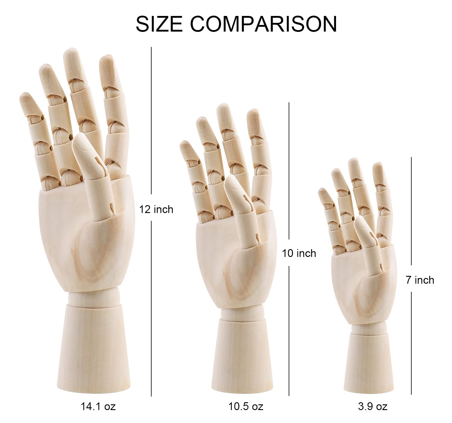 Set of Wooden Model Hands, 10 inch Left and Right Poseable Hands ...