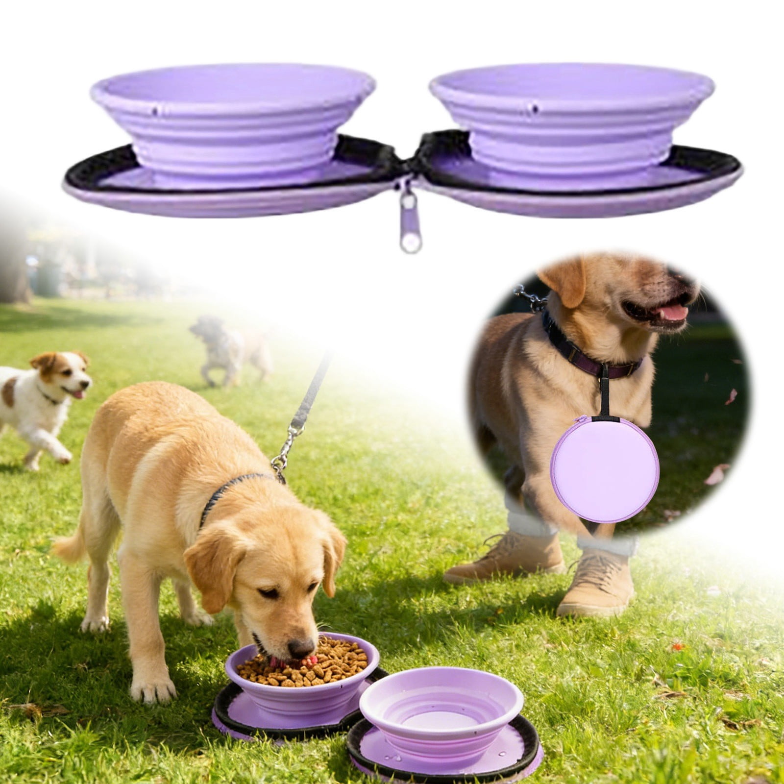 2-in-1 Portable Pet Bowl Set, Collapsible Silicone Food & Water Dish ...