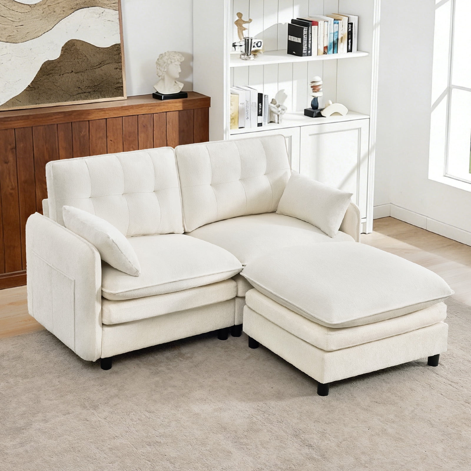 BaseBeauty Sectional Cloud Couch with Movable Ottoman, L-Shaped ...