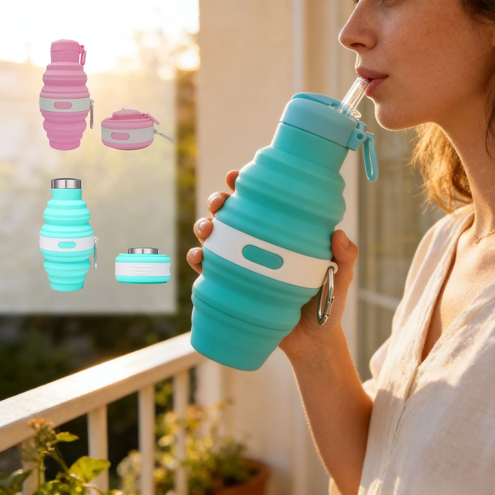 Collapsible Silicone Cup 475ml Portable Water Bottle with Leakproof Lid ...