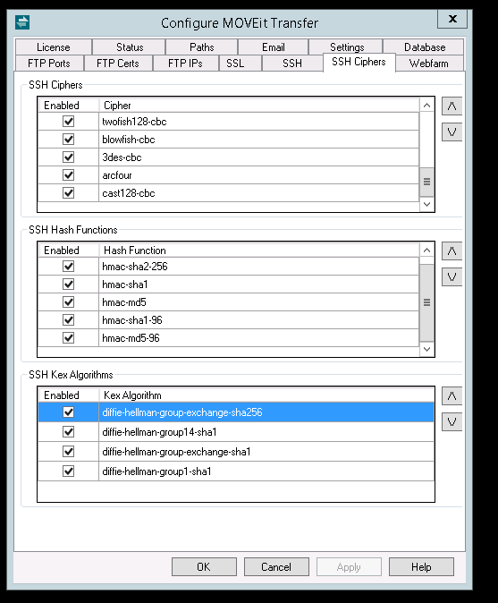 MOVEit Transfer - SSH Key Exchange Algorithms, Ciphers, Hash Functions ...