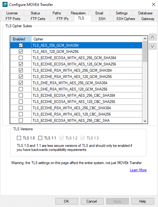 MOVEit Transfer - TLS/SSL Ciphers, SSH Key Exchange Algorithms, SSH ...