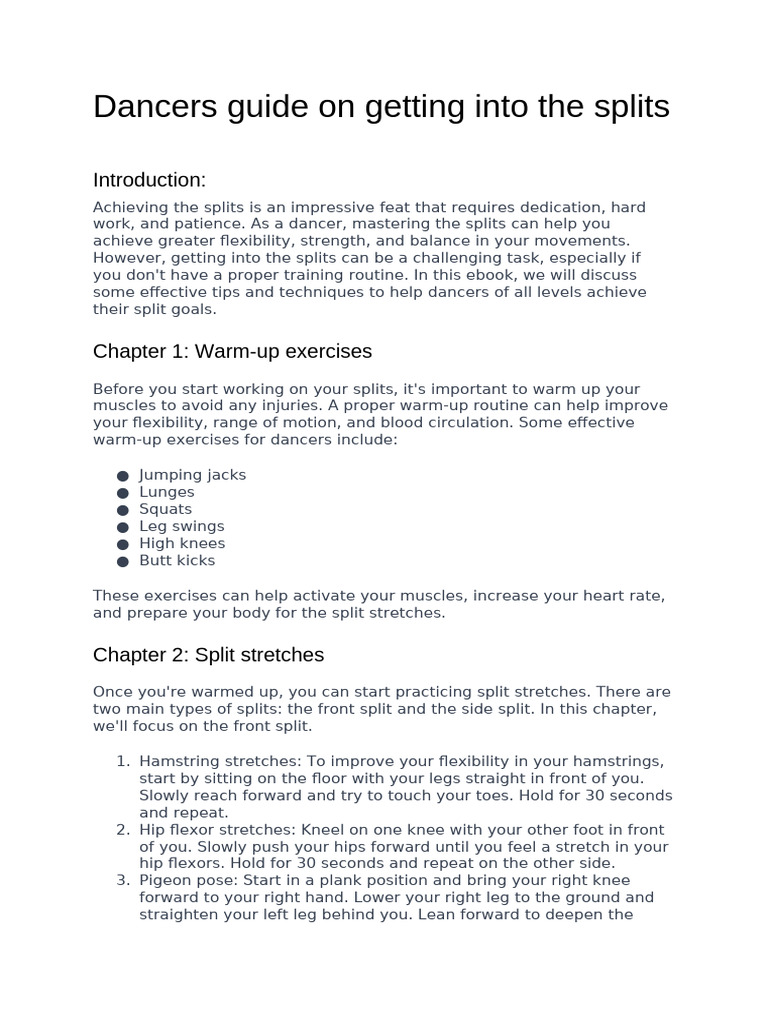 Dancers Guide On Getting Into The Splits | PDF | Flexibility (Anatomy ...