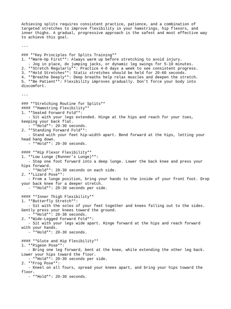 Achieving Splits Requires Consisten | PDF | Flexibility (Anatomy) | Running