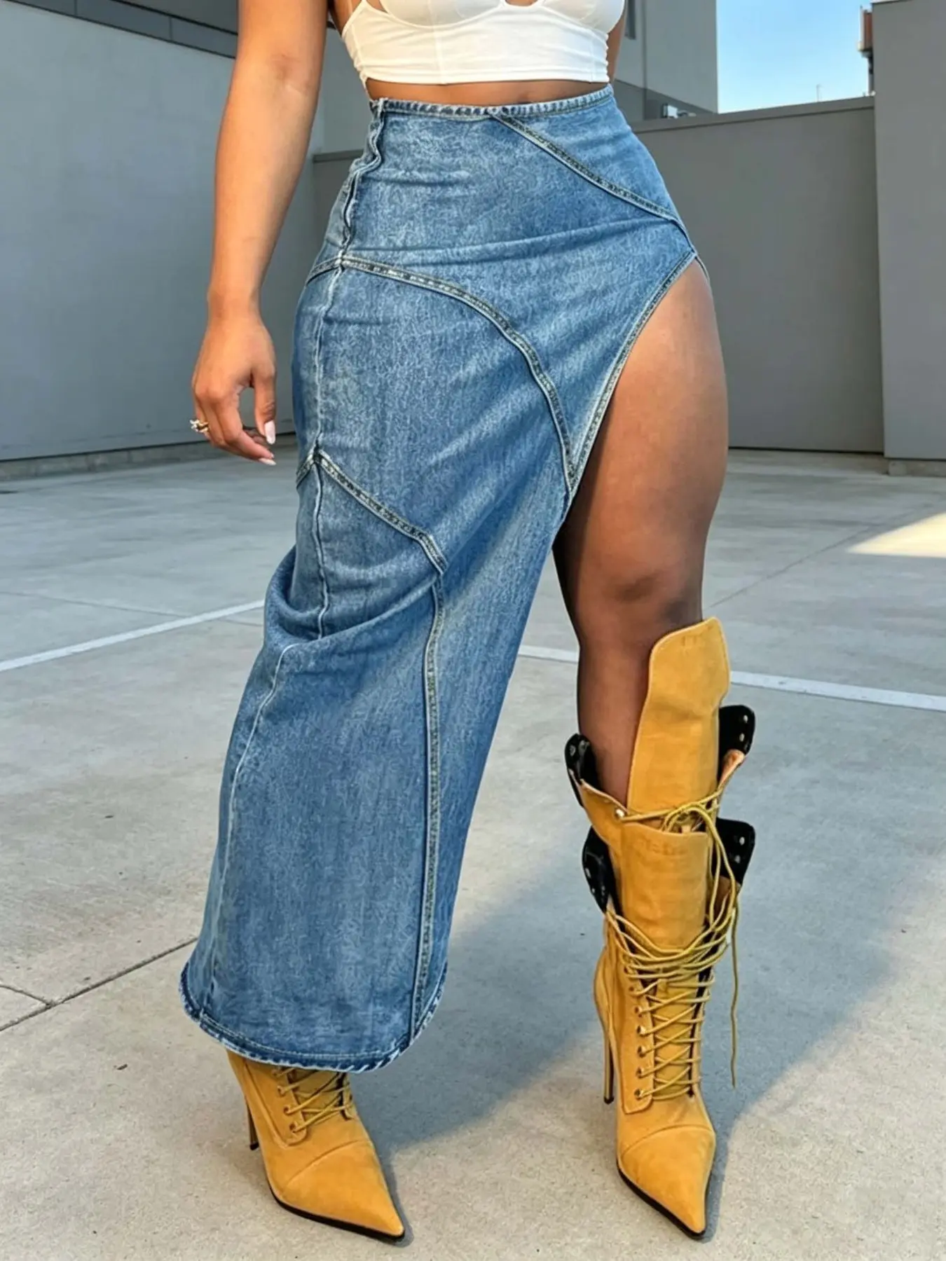Women's Casual Asymmetrical Split Thigh Long Skirt, Plain Zipper Fly ...