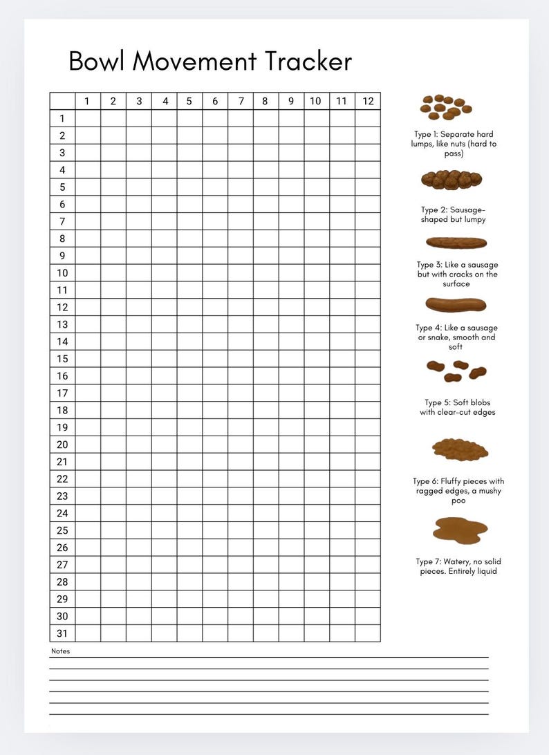 Weekly Bowel Movement Chart: Printable - Etsy