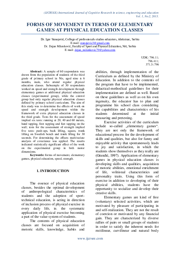 (PDF) Forms of movement in terms of elementary games the teaching of ...