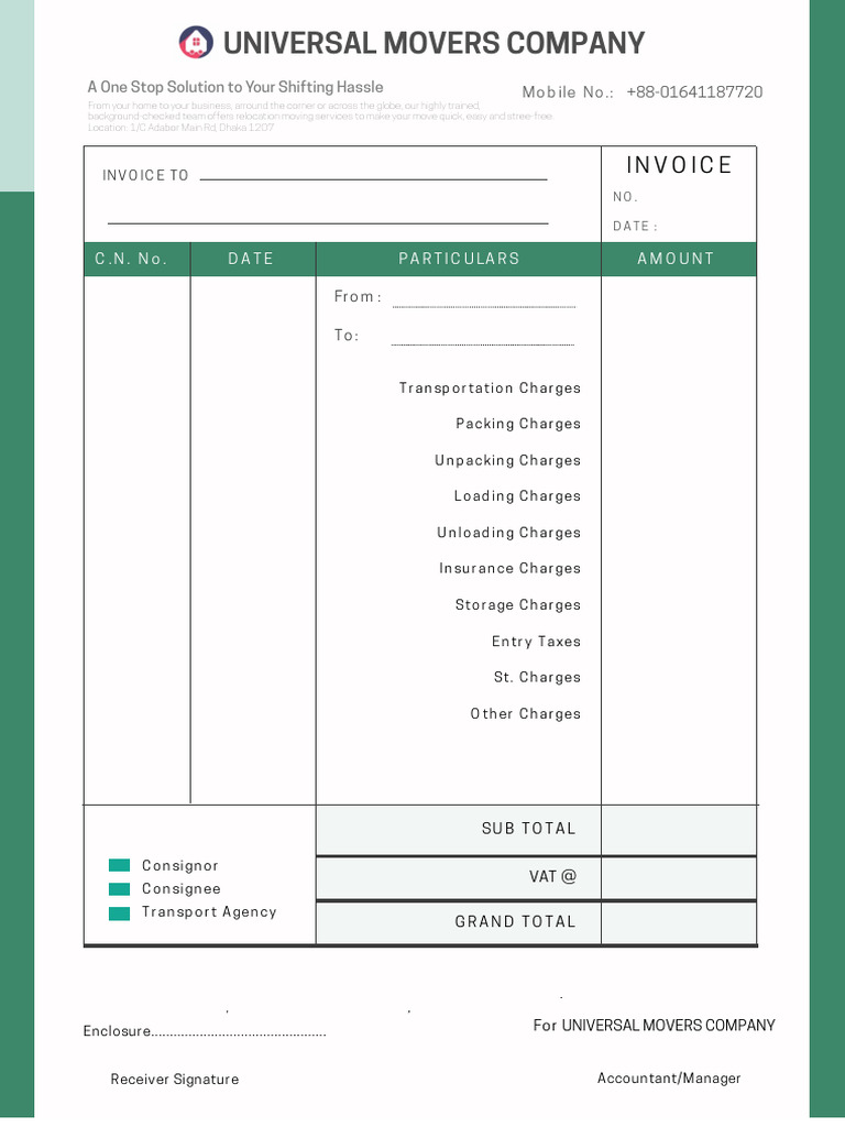 movers bill invoice sample 2 Invoice Sample, House Shifting ...
