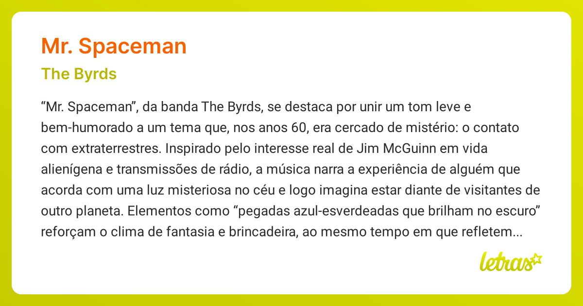 Significado da música MR. SPACEMAN (The Byrds) - LETRAS.MUS.BR
