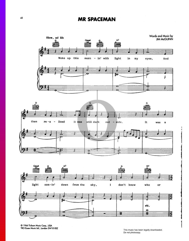 Mr. Spaceman (The Byrds) Piano Sheet Music - OKTAV